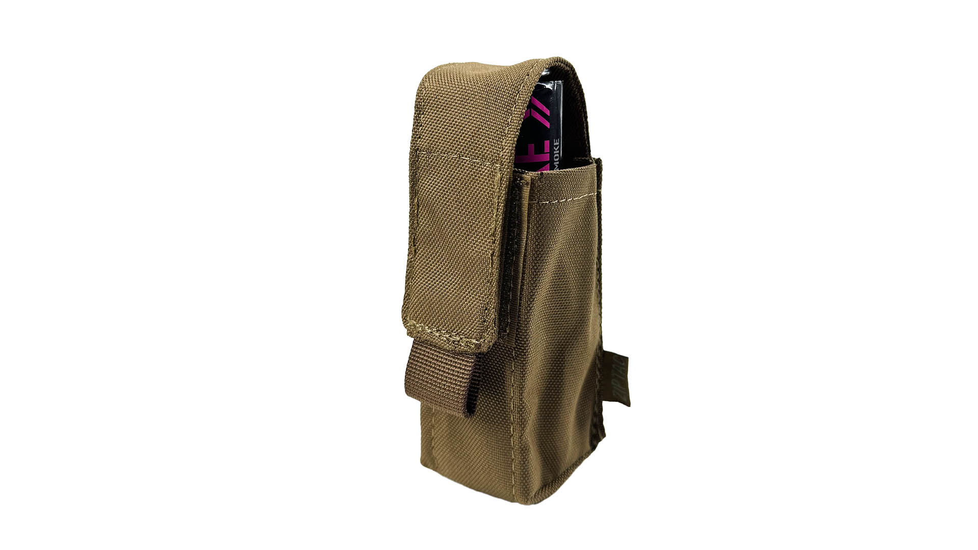 Sie eignet sich ideal für klassische Rauchgranaten wie die Enola Gaye WP40 (ca. 130 mm Länge) sowie für Granaten mit maximal 130 mm Länge und 40 mm Durchmesser. Durch die robuste Konstruktion und das clevere Design bleibt der Inhalt jederzeit fest an seinem Platz.