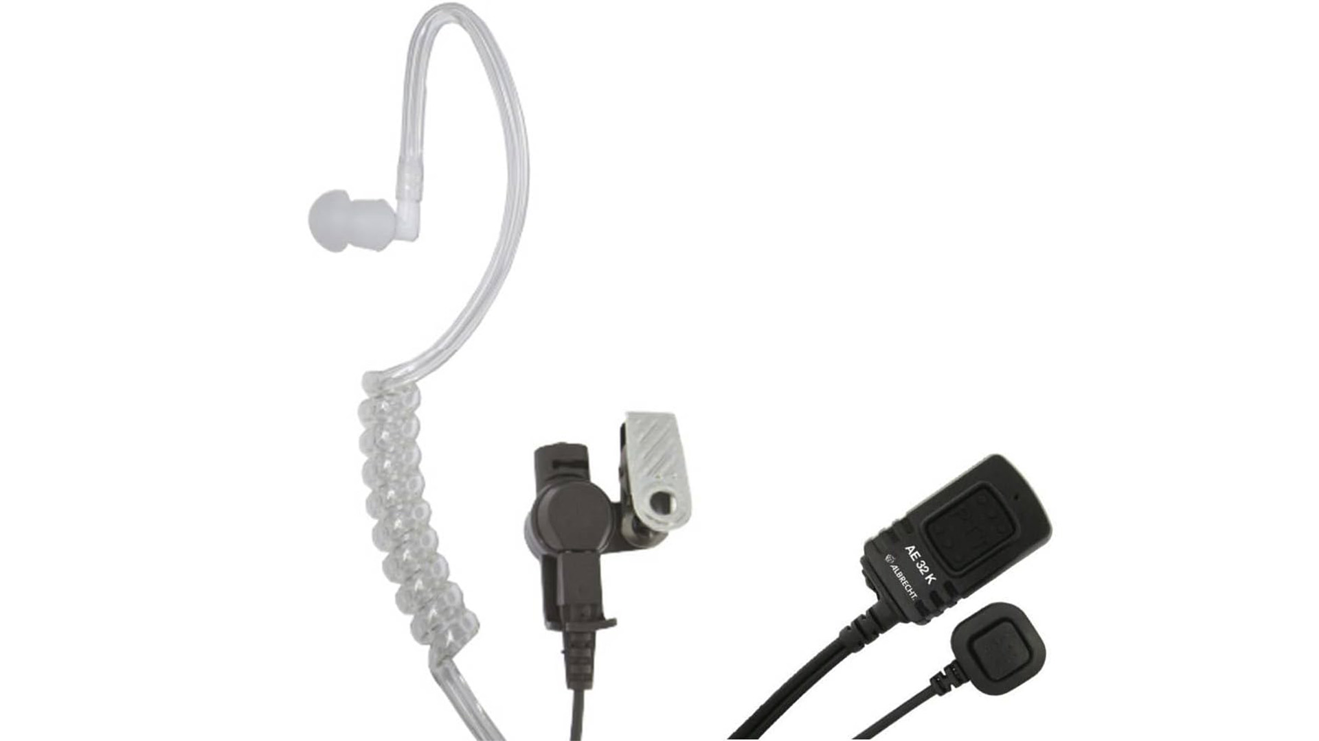 Der Albrecht AE 32 K ist ein unauffälliger Headset-Kopfhörer mit Schallschlauch und integriertem Mikrofon. Er eignet sich besonders für Funkgeräte mit 2-poligem Kenwood-Anschluss und wird häufig bei Security-, Event- oder Teamkommunikation eingesetzt. Durch den transparenten Schallschlauch sitzt der Ohrhörer diskret im Ohr und ermöglicht eine klare Funkübertragung, ohne dass ein klassischer Kopfhörer sichtbar ist.