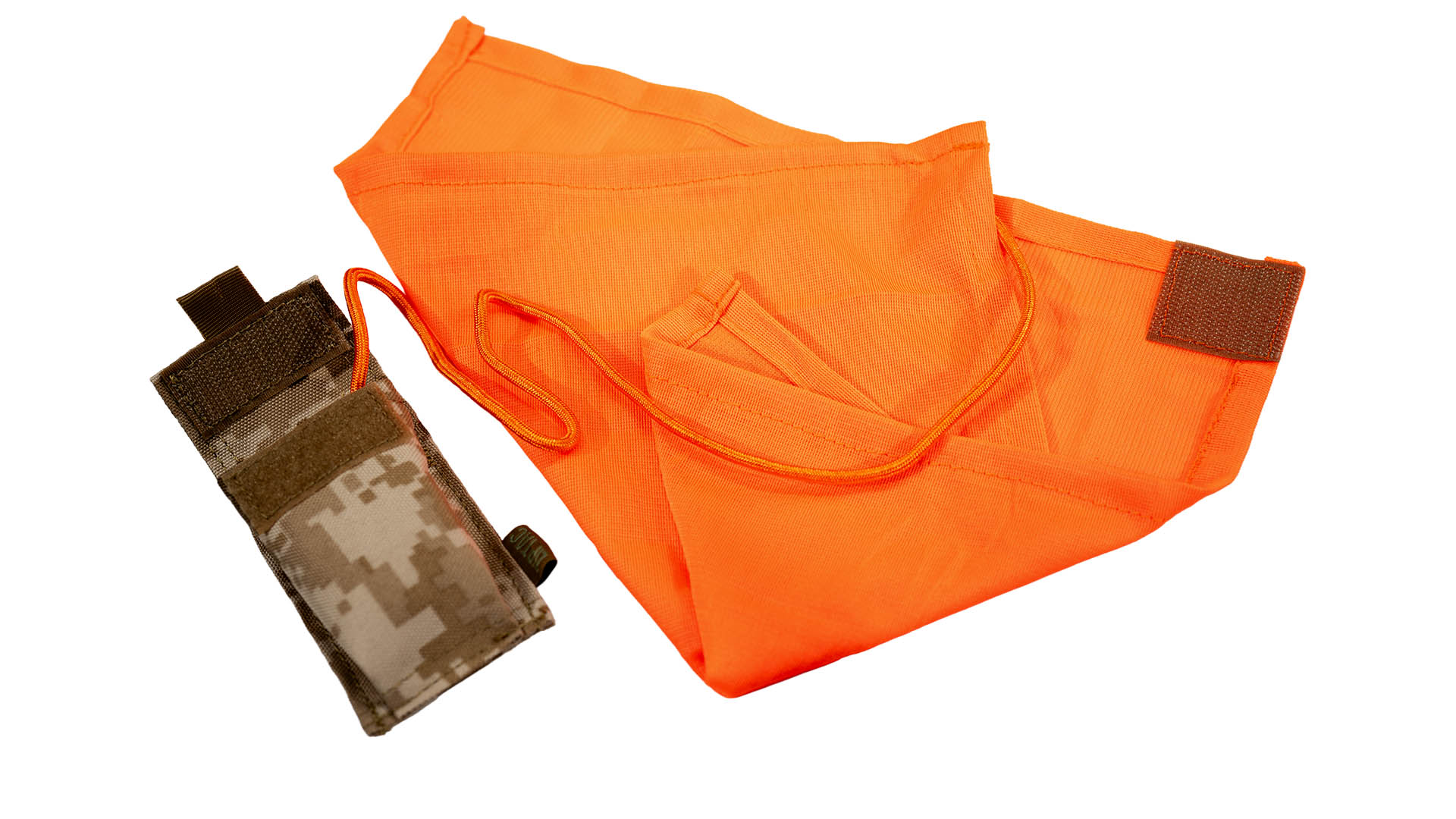 In der robusten Pouch befindet sich ein quadratisches, leuchtend oranges Markiertuch, das mit seiner Signalfarbe zuverlässig sichtbar ist – ideal, um einen Treffer eindeutig zu kennzeichnen und Missverständnisse auf dem Spielfeld zu vermeiden.