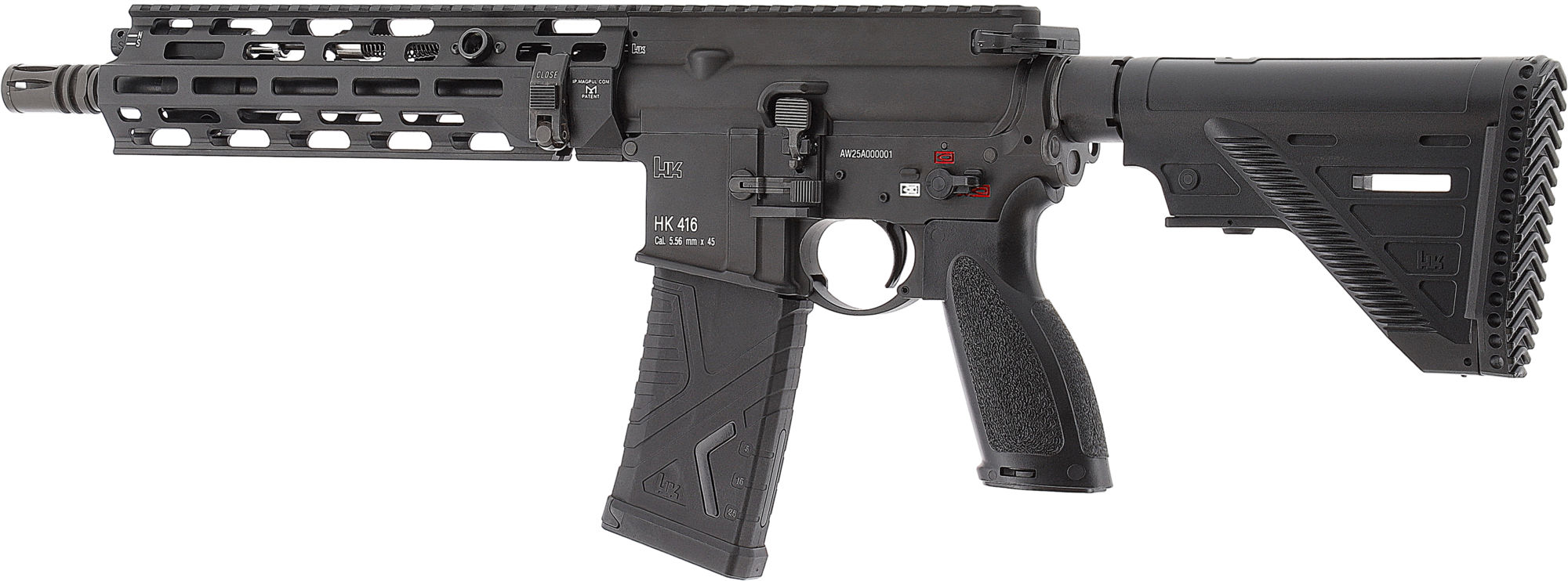Die HK416 A5 ist eine hochklassige Gas-Airsoft-Replik in Vollmetallbauweise, die speziell für anspruchsvolle Spieler entwickelt wurde und keine Wünsche offenlässt. Der M-LOK Vorderschaft bietet flexible Montageoptionen für Zubehör, während die Picatinny-Toprail die Befestigung von Optiken ermöglicht. Der Pistolengriff ist AR-kompatibel und die Mil-Spec Buffer Tube nimmt standardisierte AR-Schäfte auf. Beidseitig angeordnete Bedienelemente, ein einstellbares Shoot-Up und das linksgewindige M14x1-Mündungsgewinde runden die Premium-Ausstattung ab. Geliefert wird die Waffe ohne mechanische Visierung.