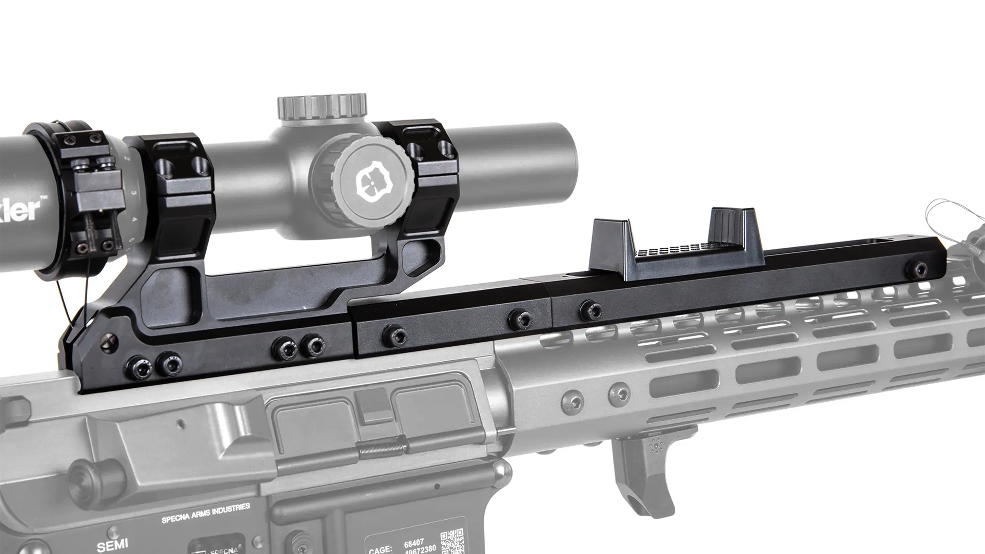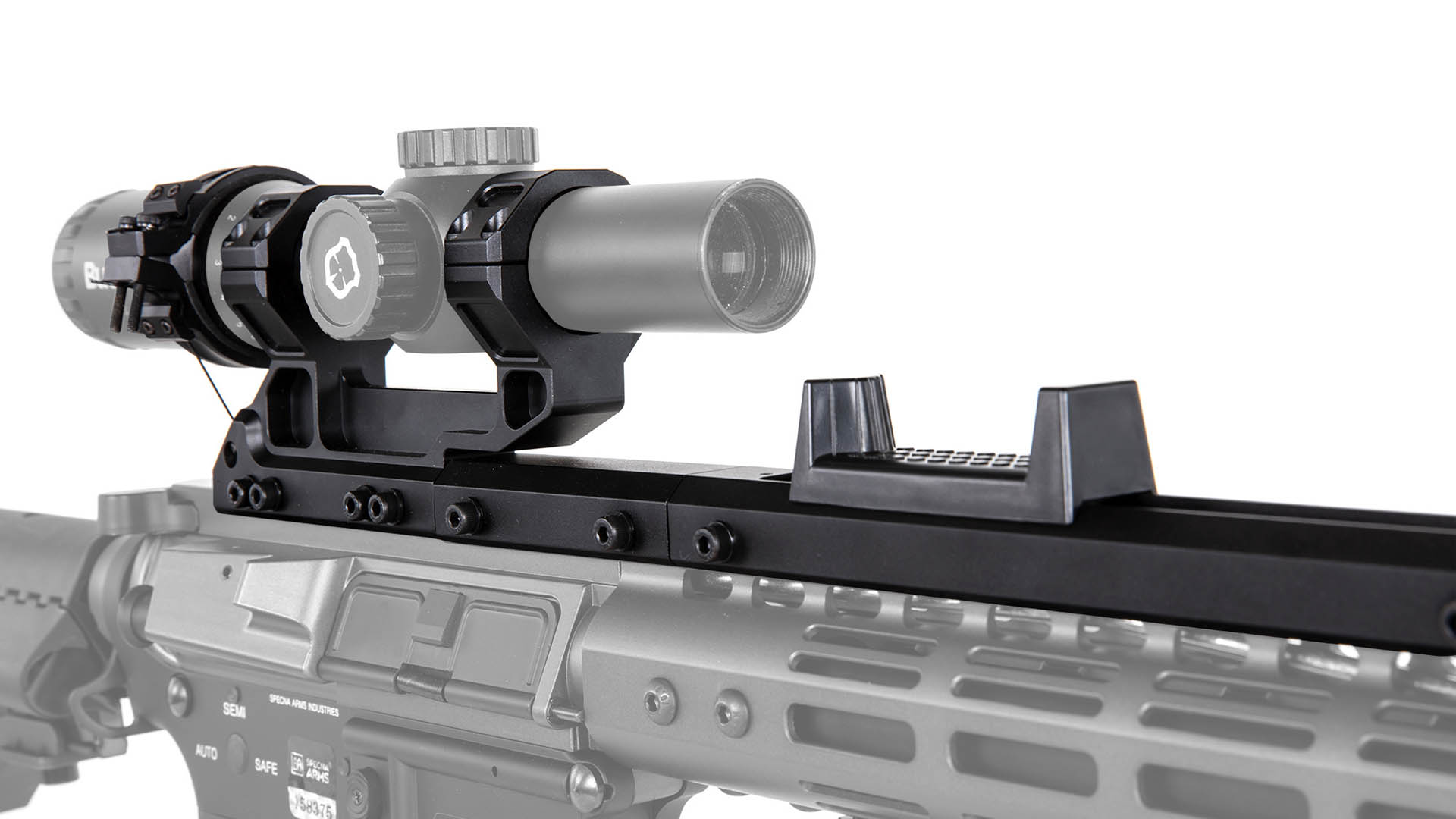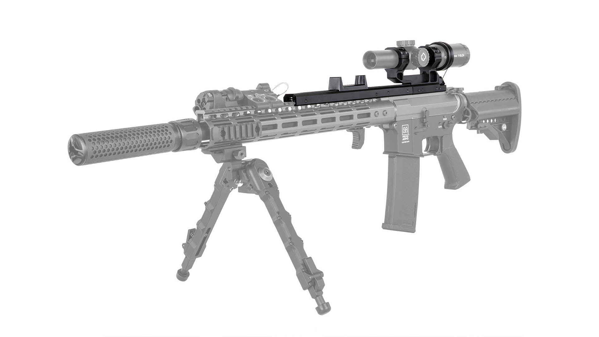 - Kompatibilität: für 34 mm Rohrdurchmesser von Zielfernrohren; benötigt eine durchgehende RIS/Picatinny-Schiene gleicher Höhe mit mind. 37 cm Länge.