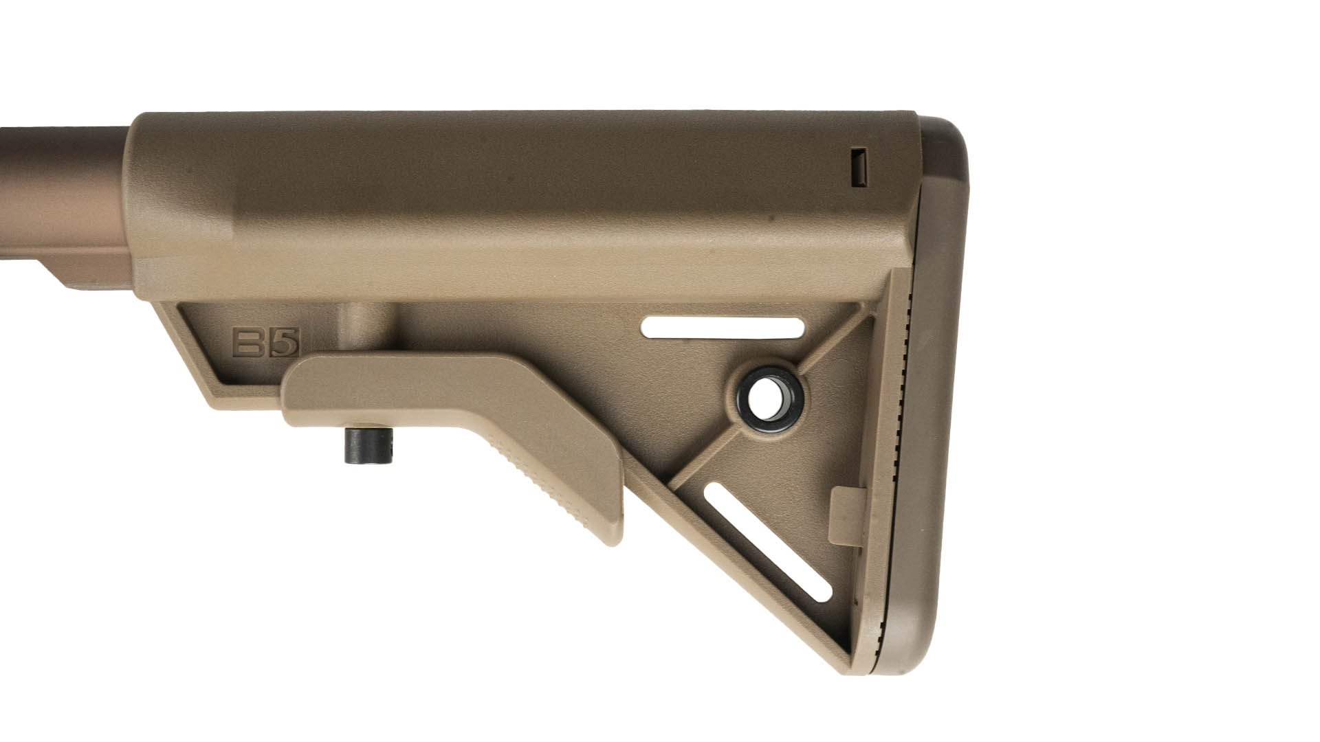 • Features: Realistisches Gas-Blowback-System; M-LOK-Handguard; Picatinny-Toprail; klappbarer Schaft; beidseitige Bedienelemente