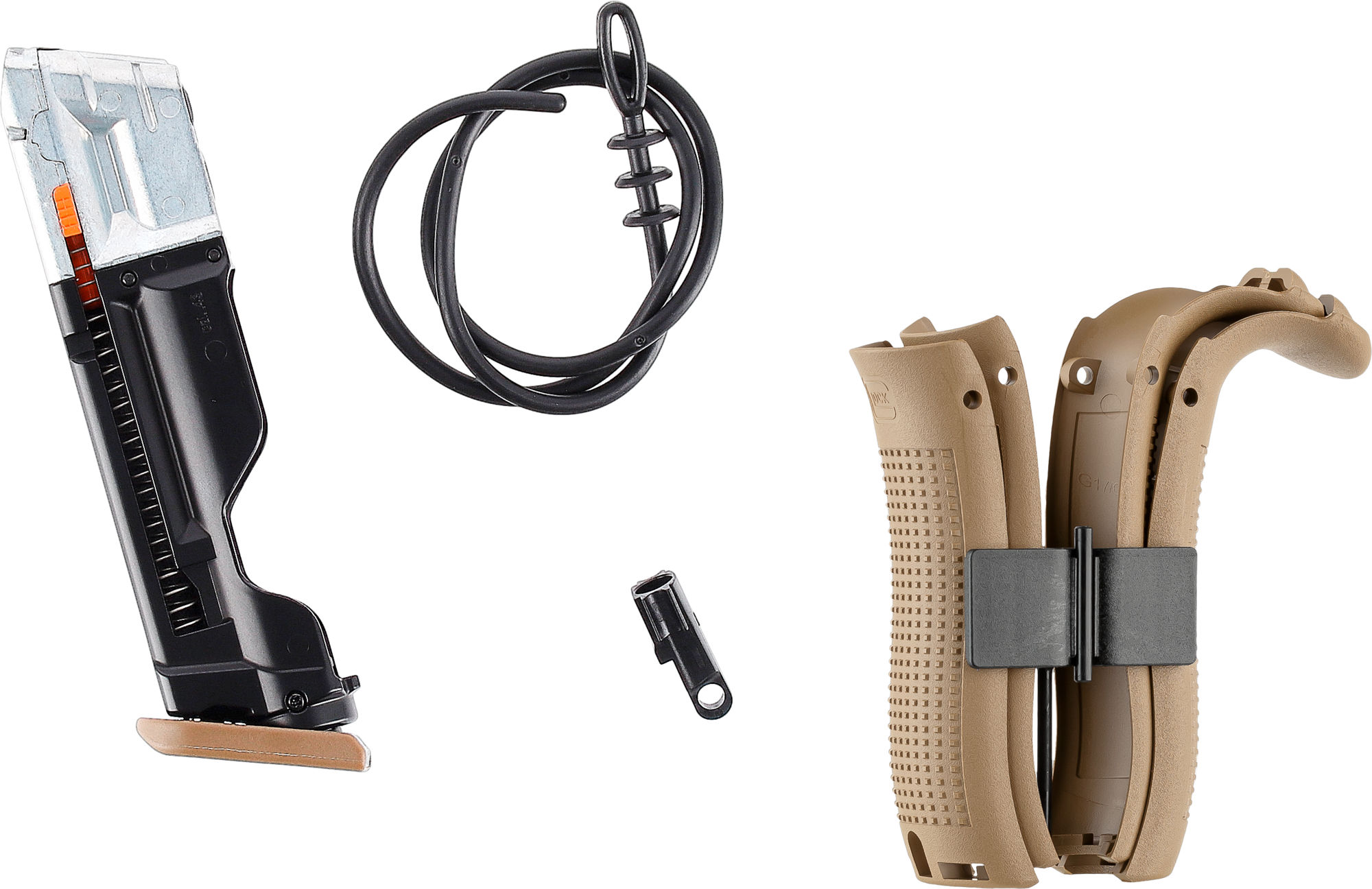 Der CNC-gefräste Aluminiumschlitten (AW 7075), ein kräftiges Blowback-System sowie Gen5-Features wie beidseitiger Schlittenfang, Front Serrations und umsetzbarer Magazinhalter sorgen für ein authentisches Handling. Durch die exakten Maße ist der Markierer kompatibel mit originalen GLOCK-Holstern sowie Zubehörteilen, einschließlich Visierungen und Tuning-Teilen des GLOCK-Zubehörmarkts.