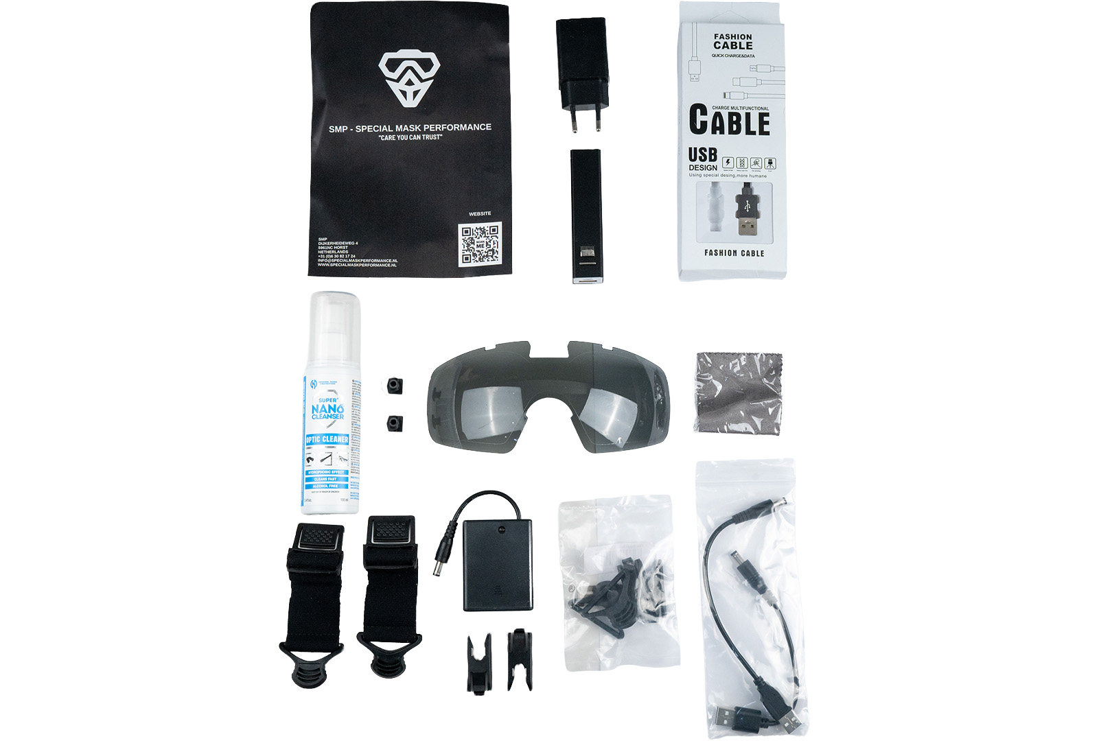 Das SMP Pro Package richtet sich an Airsoft-Spieler und professionelle Anwender, die maximale Anpassbarkeit und umfassenden Schutz benötigen. Im Vergleich zum Basic-Paket enthält diese Version deutlich mehr Komponenten und ermöglicht die Nutzung mit oder ohne Helm.