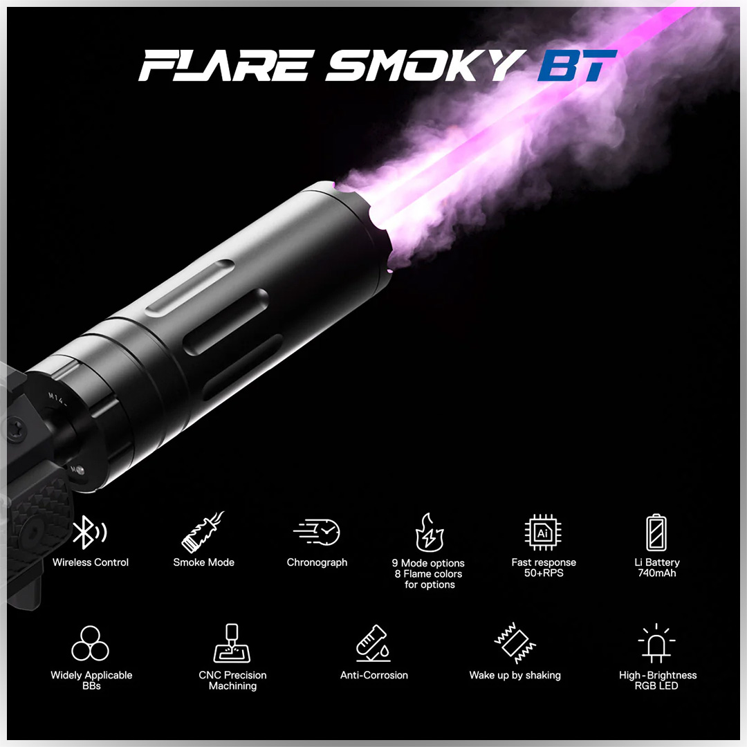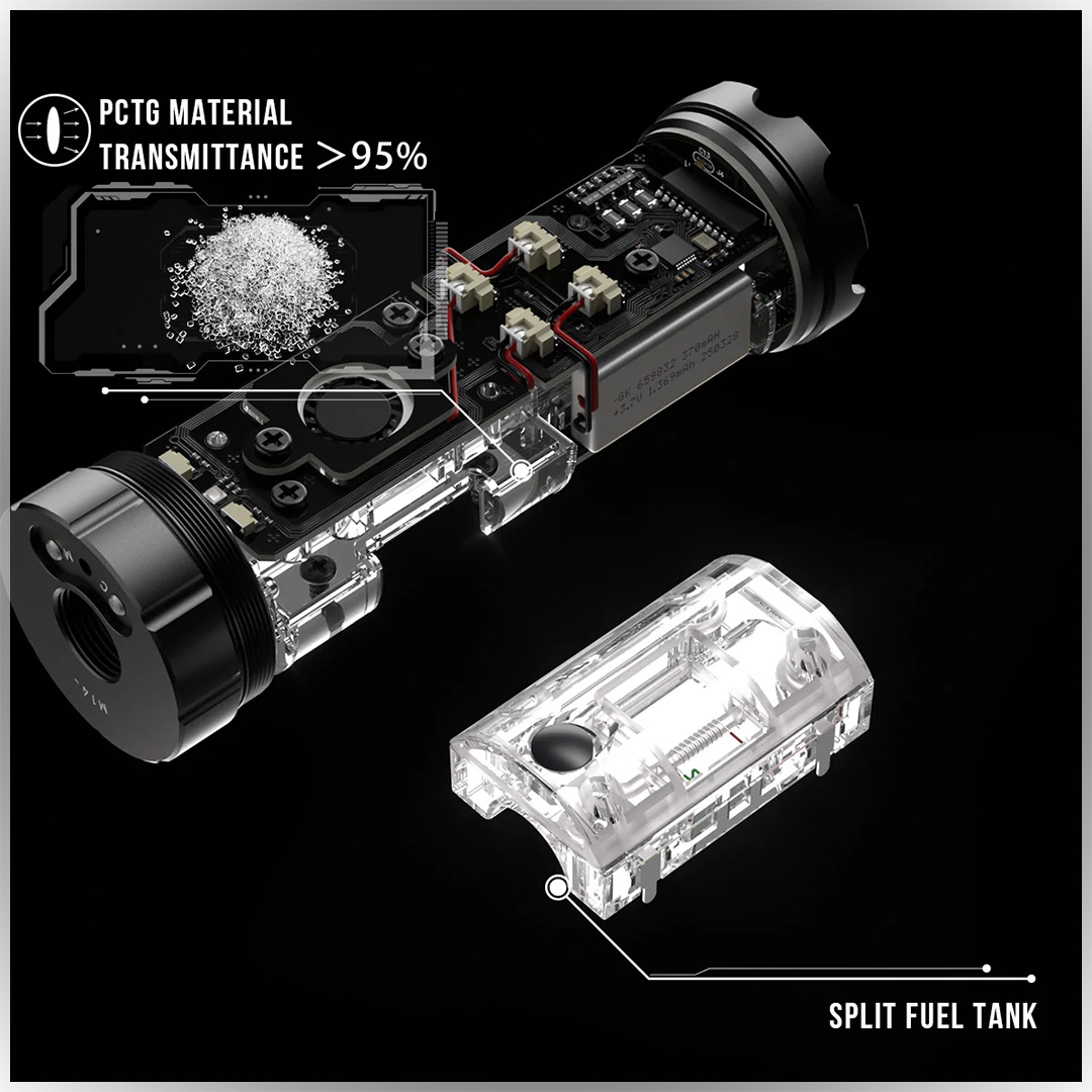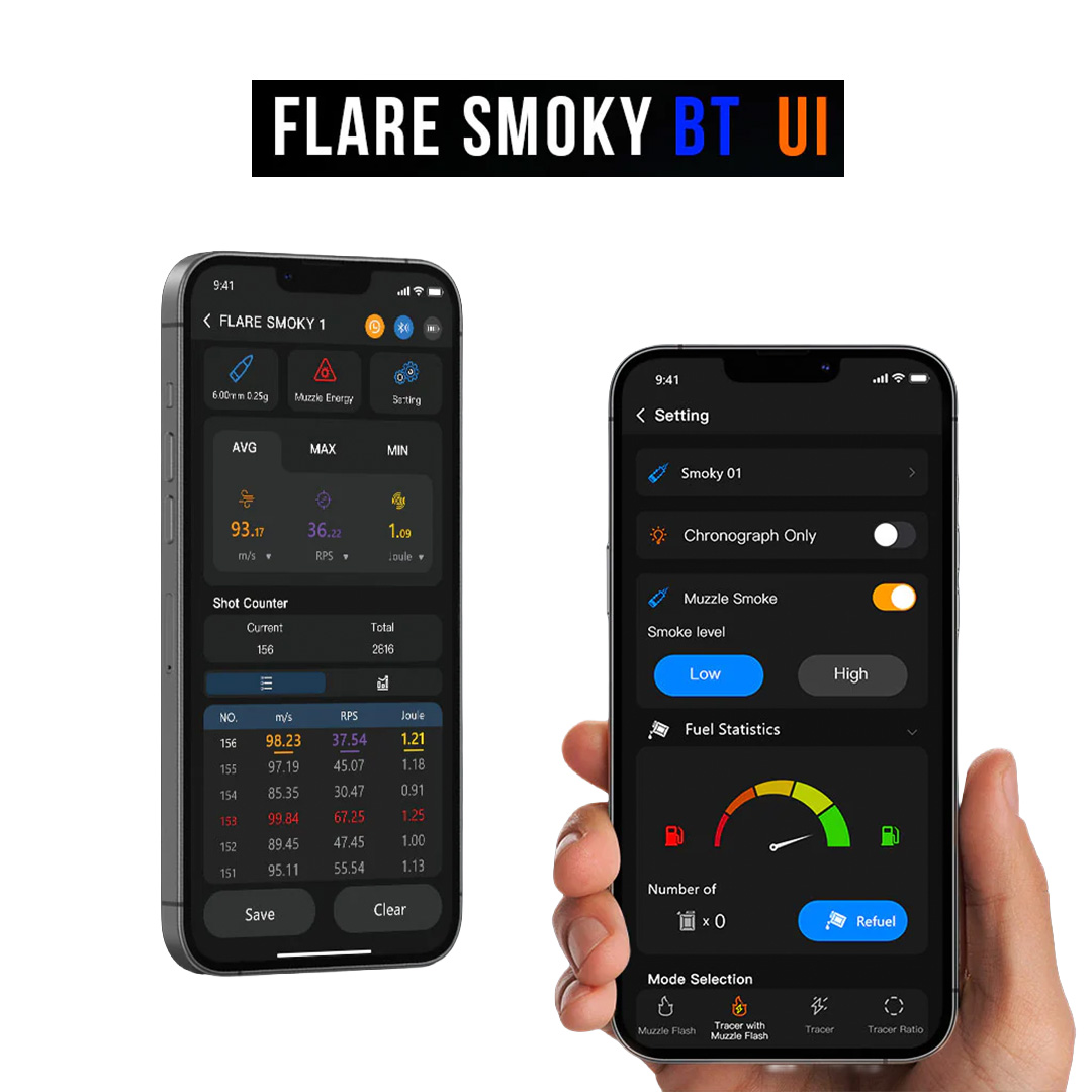Bluetooth & App-Steuerung – Steuerung von Rauchintensität, Tracer- und Mündungsmodi sowie Chronograph-Daten (m/s, Joule, RPS) per Smartphone. OTA-Updates möglich.