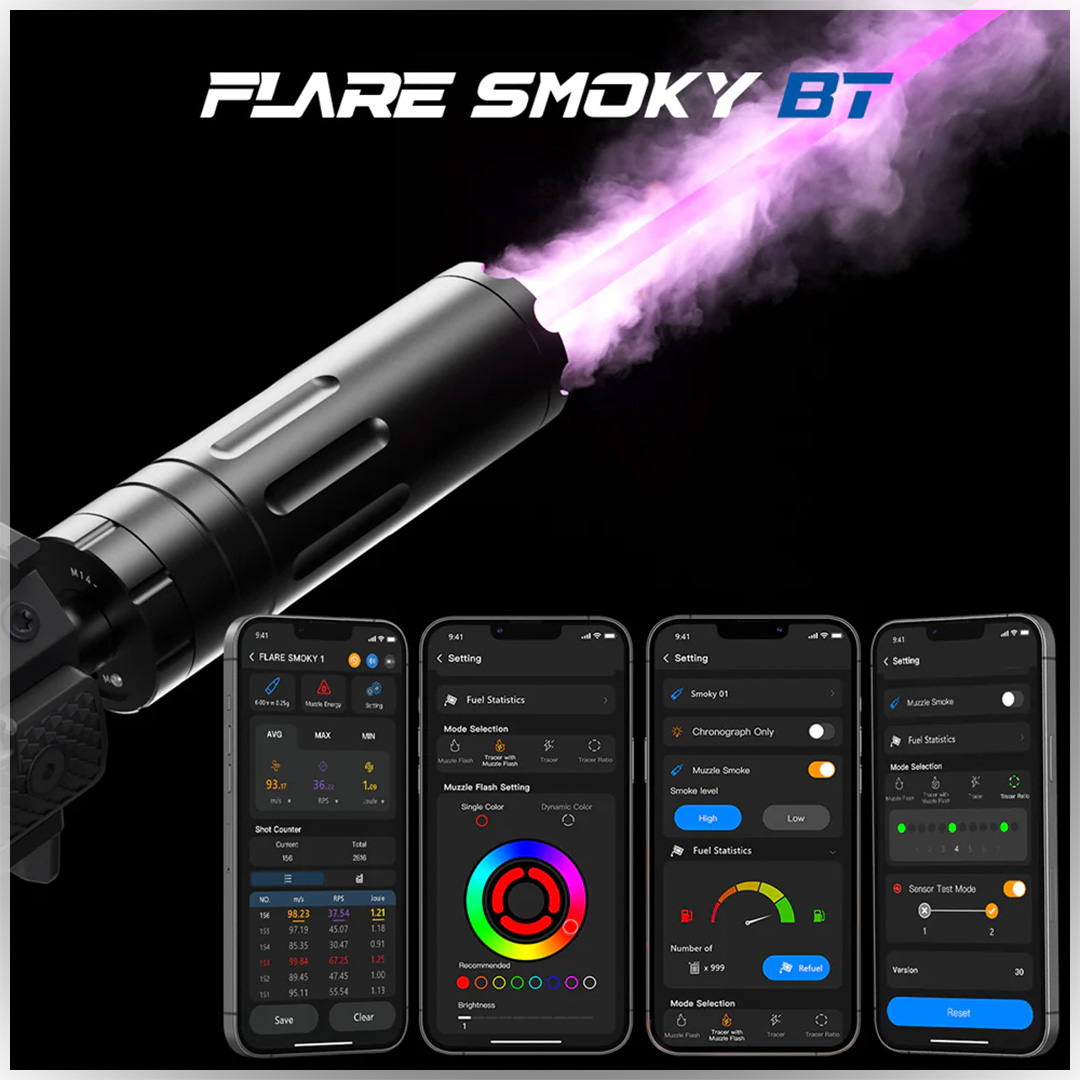 Die Eshooter Flare Smoky BT Tracer Unit ist eine leistungsstarke Tracer-Einheit mit realistischem Mündungsrauch, entwickelt für moderne Airsoft-Setups. Sie kombiniert visuelle Effekte, präzise Datenerfassung und App-Steuerung in einem robusten, kompakten Gehäuse.