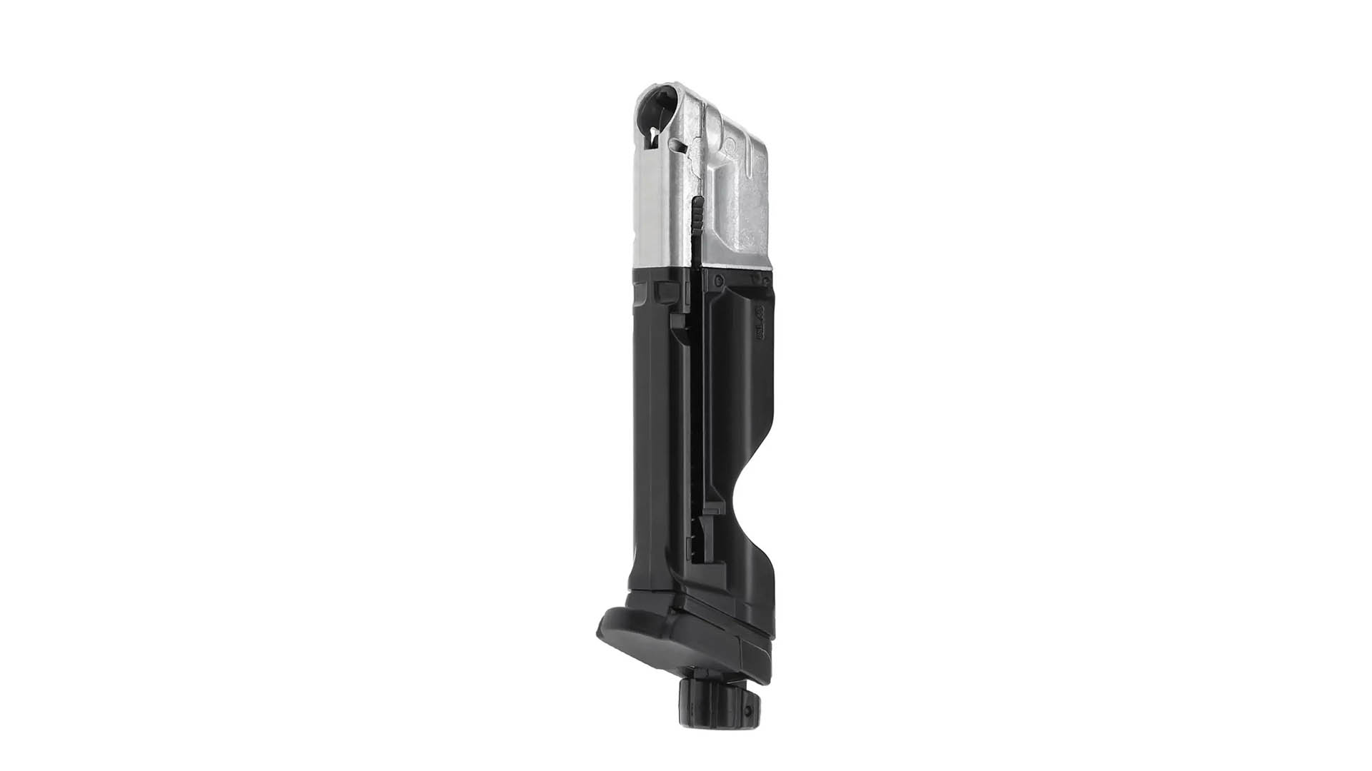 Das Ersatzmagazin Quick-Piercing für den Heckler & Koch SFP9 T4E Defense Training Marker ist ein speziell entwickeltes Magazin für Trainings- und Markierungsmarker im Kaliber .43. Es verfügt über das integrierte Quick-Piercing-System, das ein schnelles und kontrolliertes Anstechen der CO₂-Kapsel ermöglicht, ohne diese dauerhaft unter Druck zu setzen. Dadurch bleibt die Dichtung geschont und der Marker ist bei Bedarf sofort einsatzbereit.