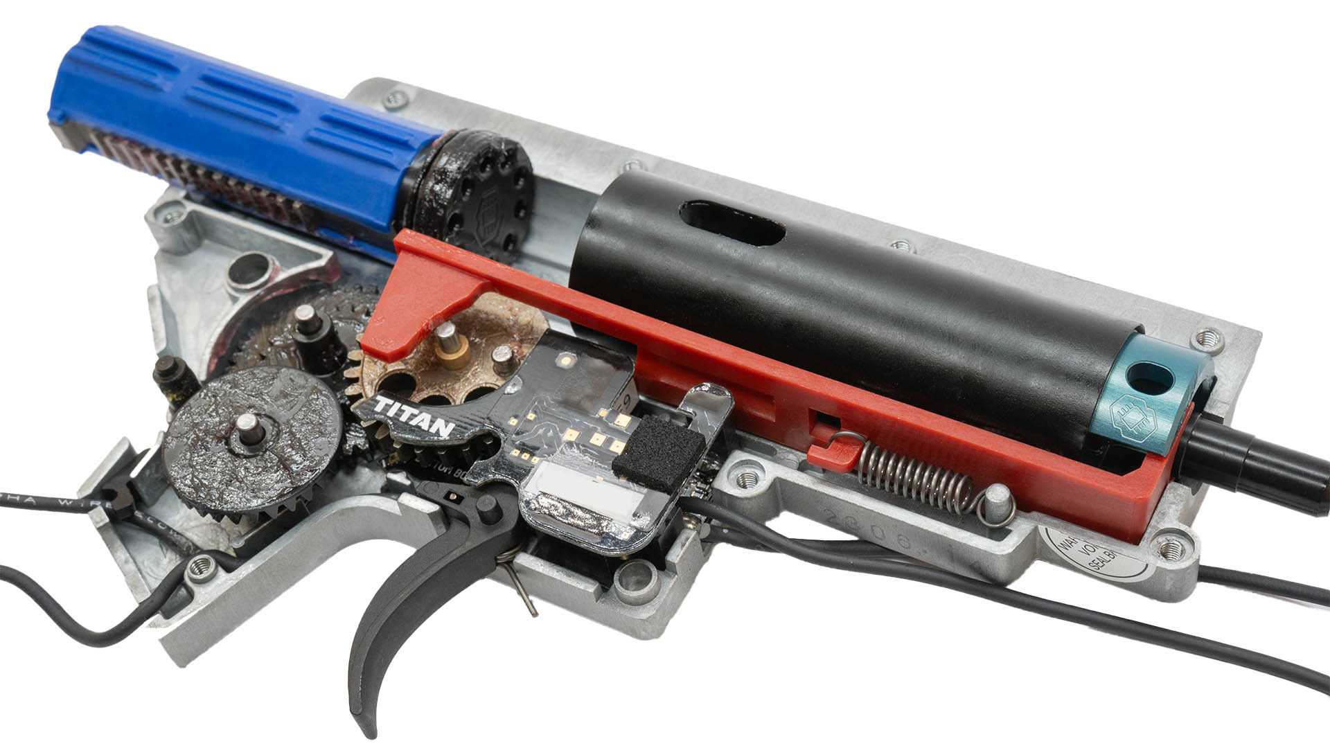 Alle internen Komponenten wurden gegen ausgewählte High-End-Tuning-Parts ausgetauscht, um eine optimale Performance zu gewährleisten. Das Ergebnis ist eine äußerst stromsparende S-AEG mit sauberem Schussverhalten, schneller Trigger-Response und gleichmäßiger Energieabgabe.