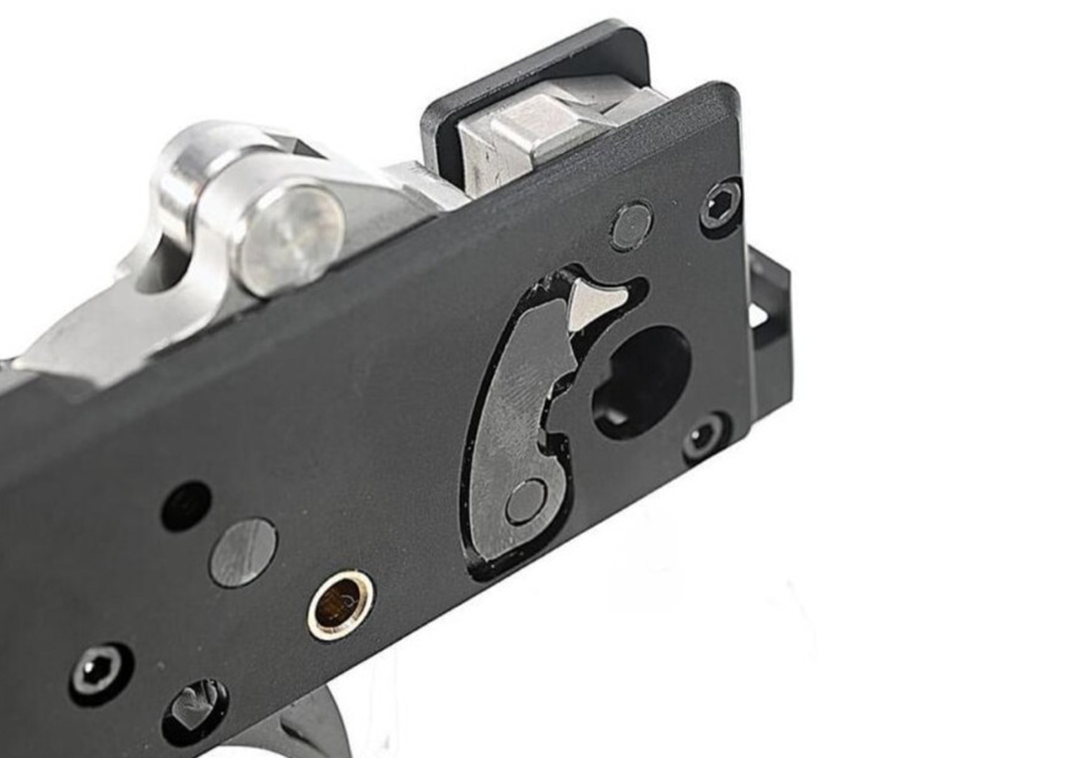 Gefertigt aus CNC-gefrästem Edelstahl, Aluminiumlegierung und Kupfer, bietet die Triggerbox eine deutlich höhere Widerstandsfähigkeit gegenüber Verschleiß als Standardteile. Als Drop-In Einheit ist sie bereits vormontiert und ermöglicht – mit entsprechender Erfahrung – einen vergleichsweise einfachen Austausch der originalen Abzugsgruppe.