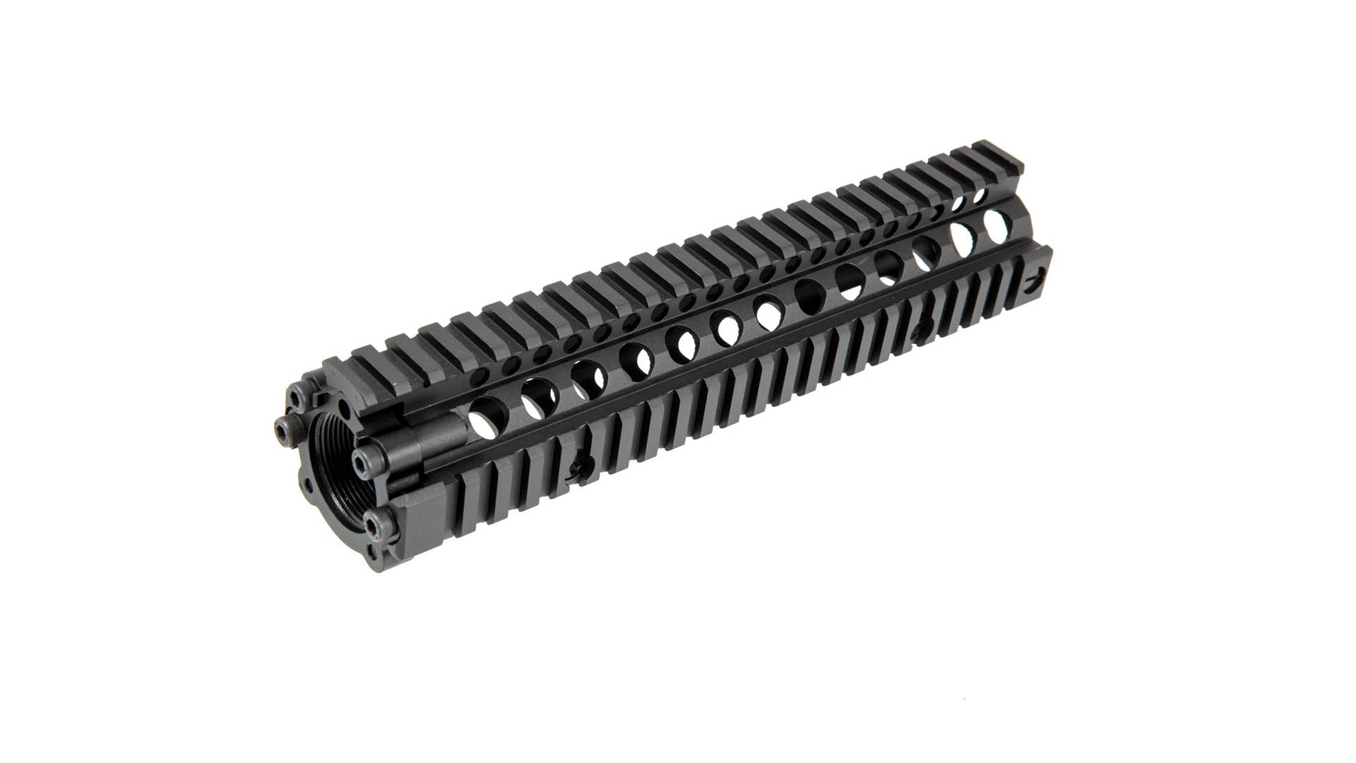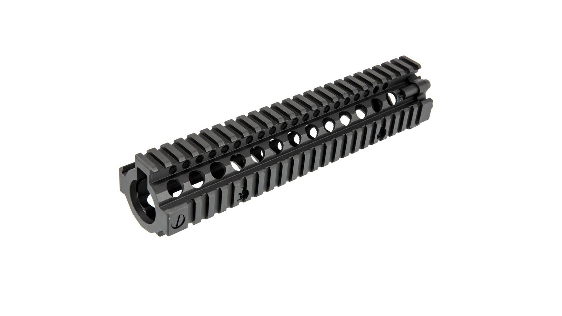 Der MK18 9.5 Mounting Rail für M4/M16-Repliken ist eine robuste Montageschiene zur Erweiterung der Zubehörmöglichkeiten von Airsoft-Repliken im AR-System. Die Schiene ist für eine 22-mm-RIS-Schnittstelle ausgelegt und ermöglicht die sichere Montage von Optiken, Zielhilfen, Lampen, Lasern oder Frontgriffen.