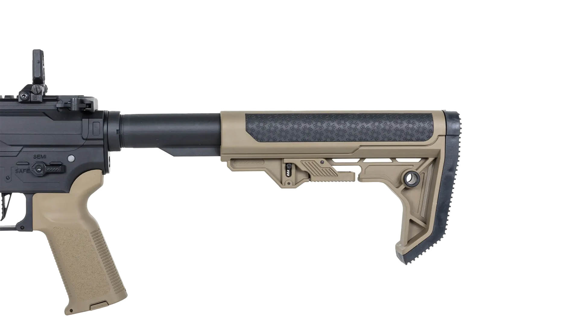 Die Specna Arms SA-F04-RLFLEX™ Light Ops Stock / New Receiver HAL ETU™ Gen.2 ist eine moderne Airsoft-Carbine mit elektronischer Steuereinheit und robuster Bauweise. Das Modell ist auf zuverlässige Performance und eine praxisorientierte Handhabung im Spielbetrieb ausgelegt.