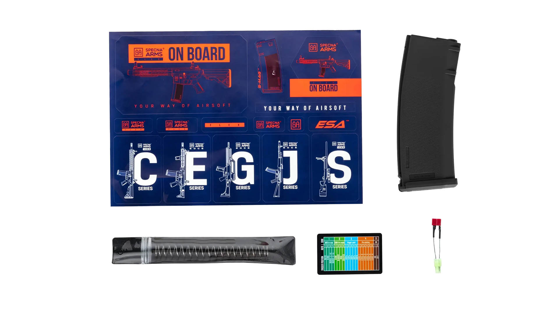 - Features: HAL™ MOSFET/ETU (Hall-Sensor), ESA™ Quick-Change-System, TDC Magnus™ Rotary Hop-Up, Helium™ Flat Hop, Æther™ Gearbox V2, 8 mm Lager, Stahlzahnräder, 6.03 mm Präzisionslauf