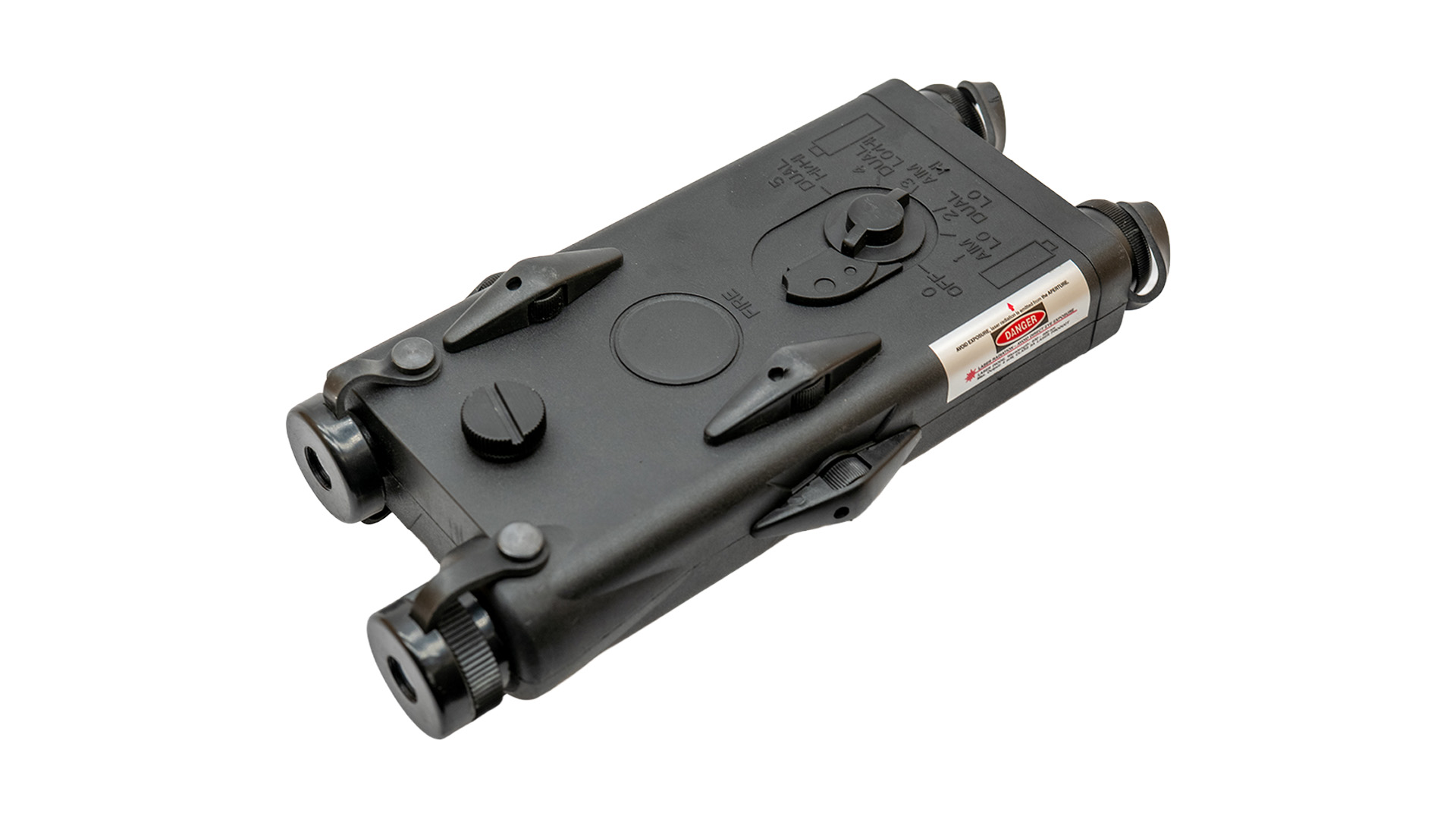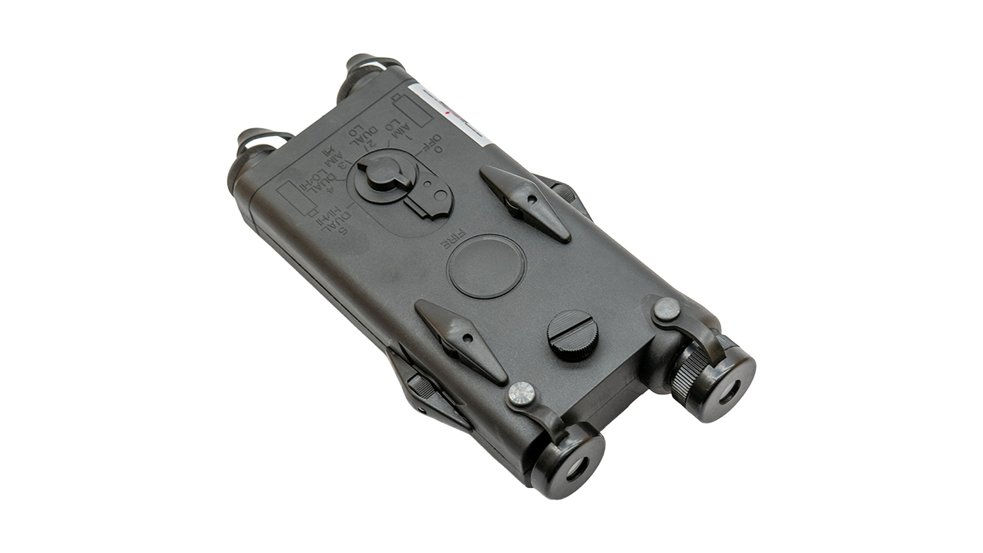 Das robuste Gehäuse besitzt detailgetreue Bedienelemente wie Drehregler, Schalter und Markierungen, die das Erscheinungsbild eines echten PEQ-Moduls nachbilden. Da es sich um eine Dummy-Version ohne Laser- oder Lichtfunktion handelt, dient die Box ausschließlich als optische Ergänzung deiner Ausrüstung.