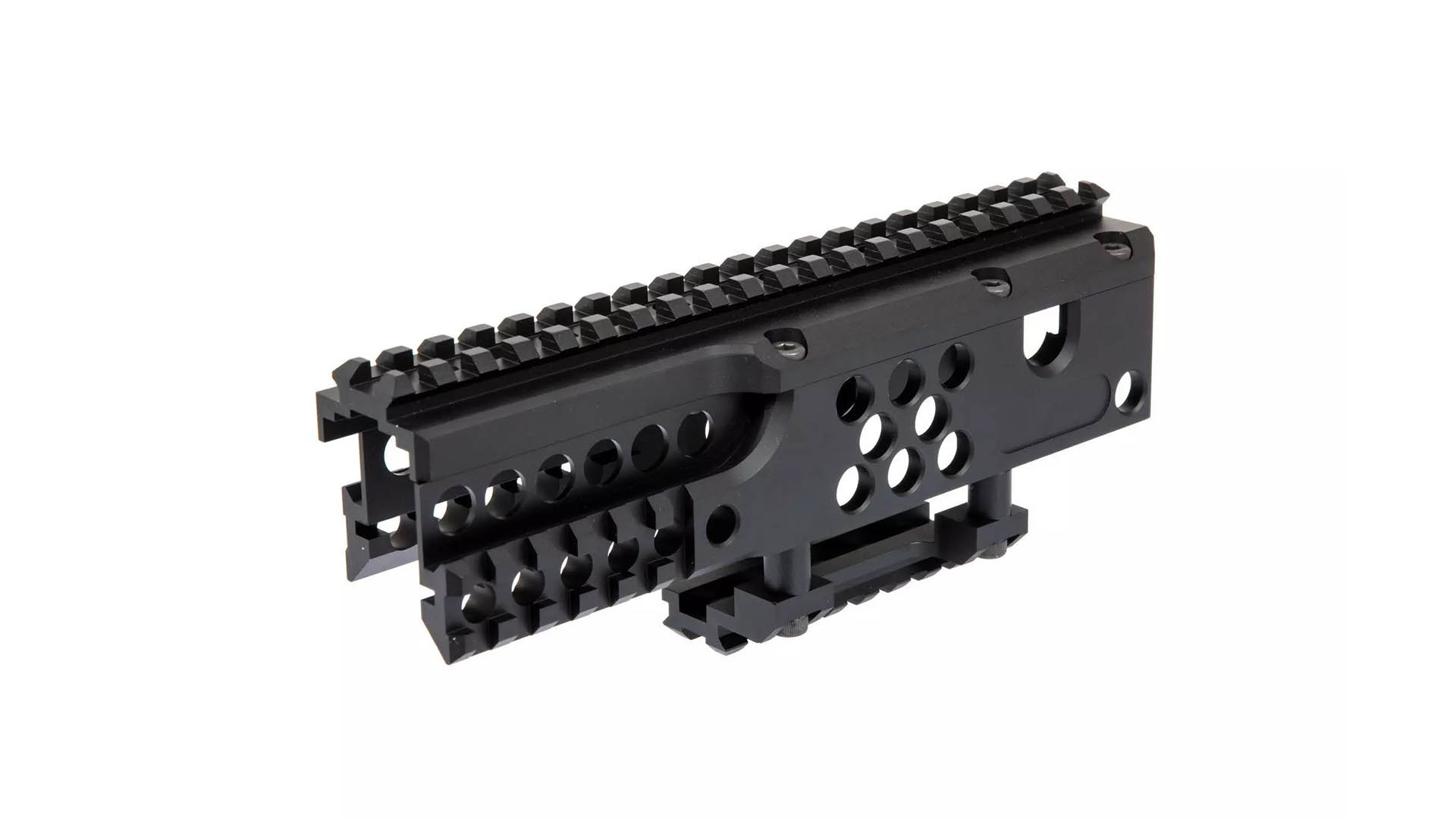 - Besondere Eigenschaften: Ermöglicht Montage von Frontgriffen, Optiken und weiterem taktischem Zubehör, verbessert Handling und Funktionalität
