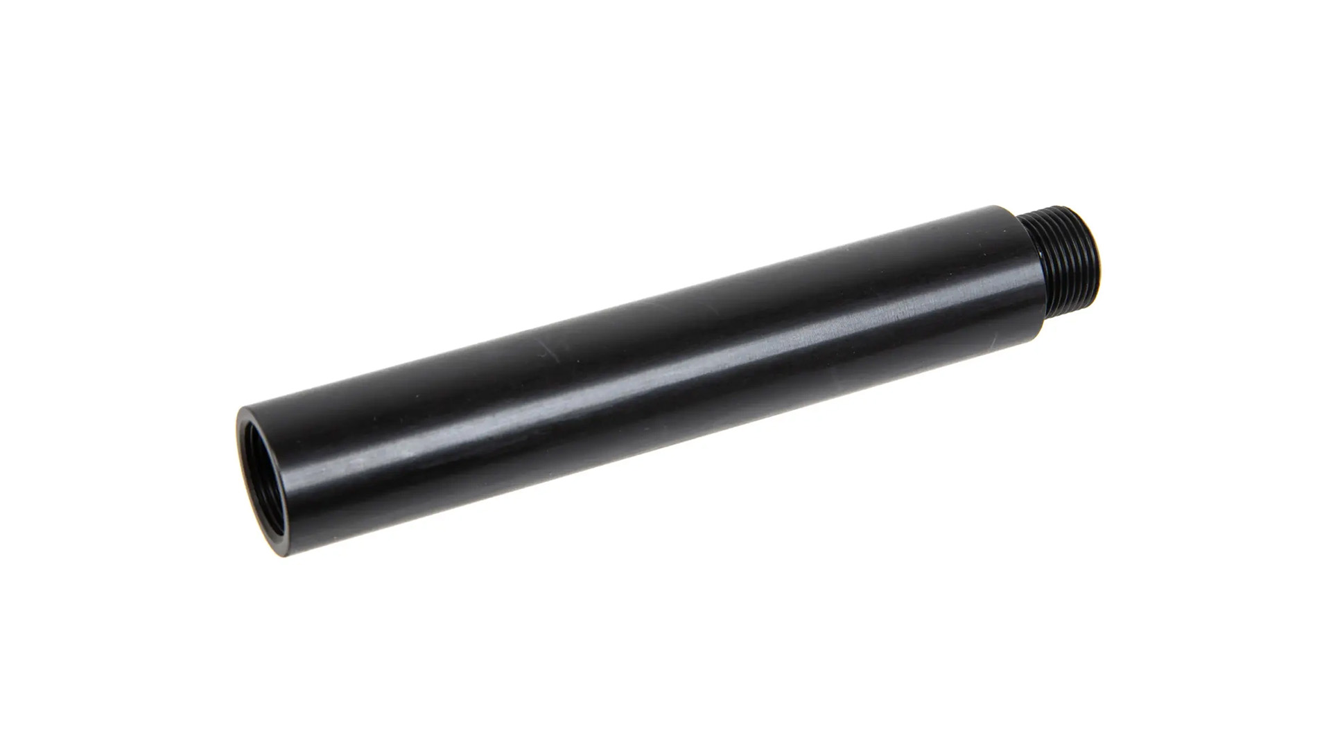Mit einer Länge von 11 cm eignet sich die Barrel Extension ideal zur optischen Verlängerung der Replik oder zur Anpassung bei der Verwendung von Schalldämpfern, Tracer Units oder längeren Frontsets. Das präzise gefertigte 14mm CCW Gewinde gewährleistet eine sichere und kompatible Montage an gängigen Airsoft AEG und GBB Modellen.