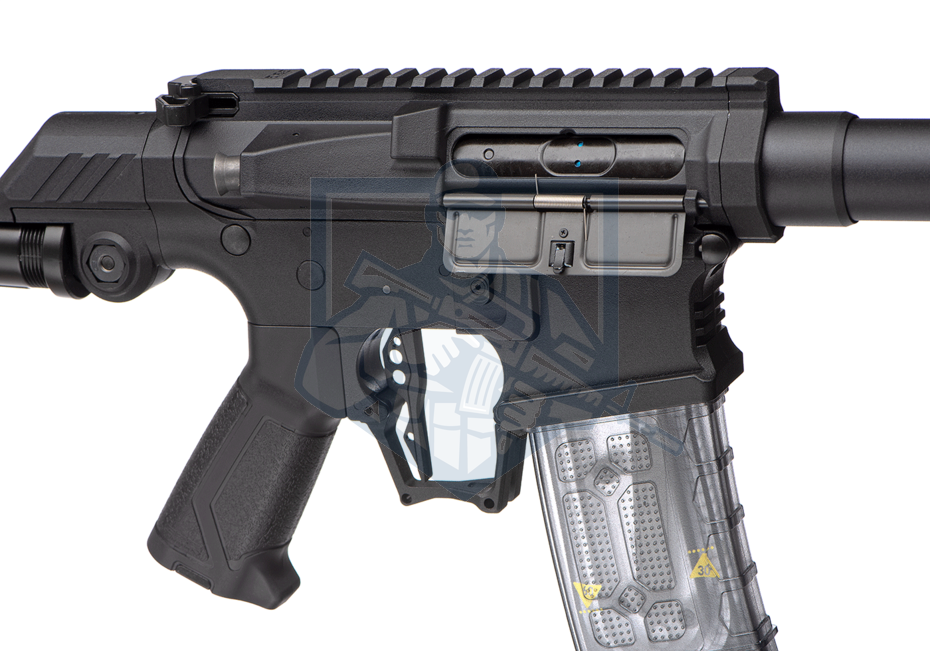 Die mit MOSFETs ausgestattete V2-Gearbox ist mit einem innovativen ETU-System gepaart, das eine hervorragende Reaktionszeit des Abzugs und eine hohe Qualität gewährleistet. Die Waffe verfügt außerdem über eine Rotary Hopup Chamber und ein Federschnellwechselsystem