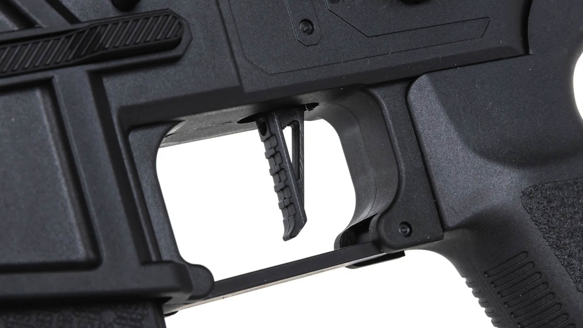 Gefertigt aus glasfaserverstärktem Nylon-Polymer und robusten Metallteilen, bietet es ein leichtes, ergonomisches Handling sowie hohe Zuverlässigkeit im Einsatz. Kompatibel ist die Replika mit M-LOK-Zubehör an der Front, 14 mm CCW Mündungsaufsätzen und intern vorbereitet für M140-Federn.