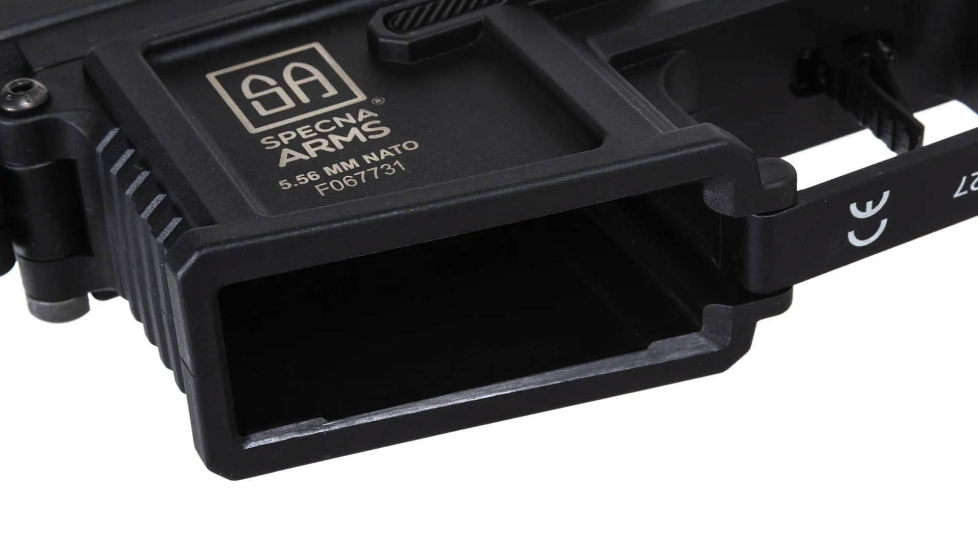Die Specna Arms SA-F04-RL FLEX™ Light Ops Stock / New Receiver HAL ETU™ ist ein Airsoft-Carbine, das durch hohe Leistungsfähigkeit, modulare Einstellbarkeit (ESA Schnellwechsel-Feder) und die präzise HAL ETU Elektronik überzeugt.