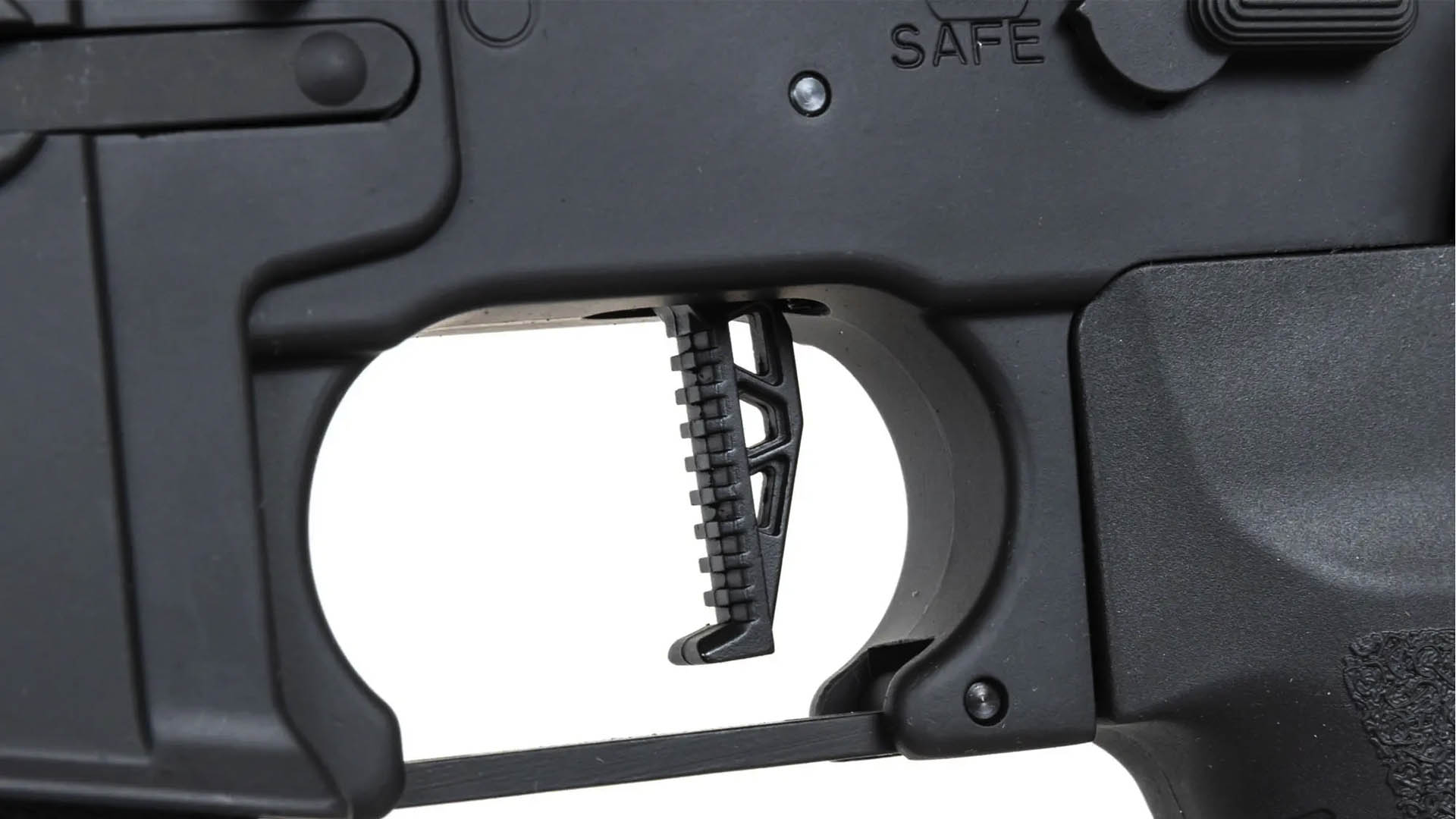 Gefertigt aus Aluminium, Stahl und hochwertigem Polymer, bietet sie eine außergewöhnliche Schussstabilität, präzise Trefferleistung und ein langlebiges Gesamtpaket. Sie ist kompatibel mit Standard-M4-/AR15-Komponenten sowie 14 mm CCW-Mündungsgewinden.