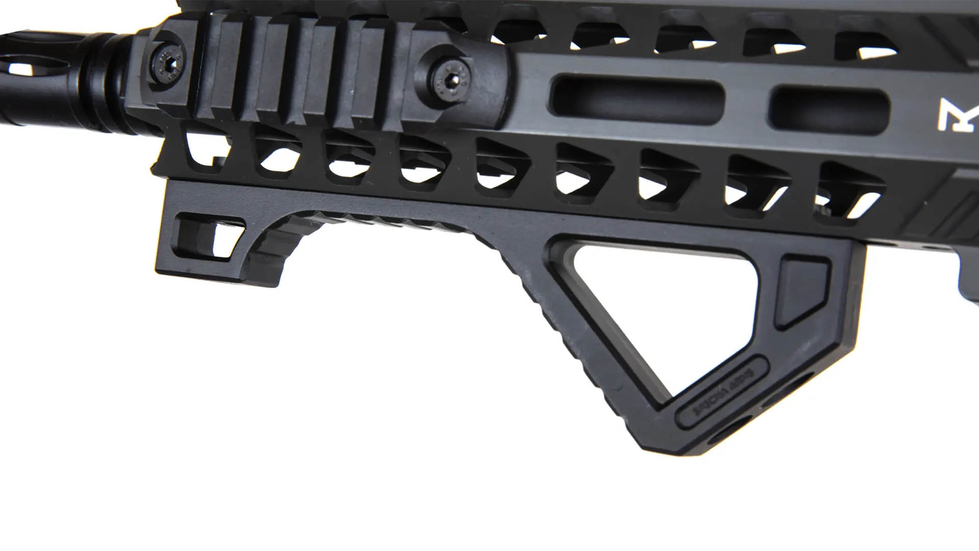 Gefertigt aus CNC-Aluminium, Stahl und widerstandsfähigem Polymer, bietet sie eine hervorragende Schussstabilität, präzise Trefferleistung und optimale Handhabung. Sie ist kompatibel mit M4/AR15-Baugruppen sowie 14-mm-CCW-Mündungsgewinden.