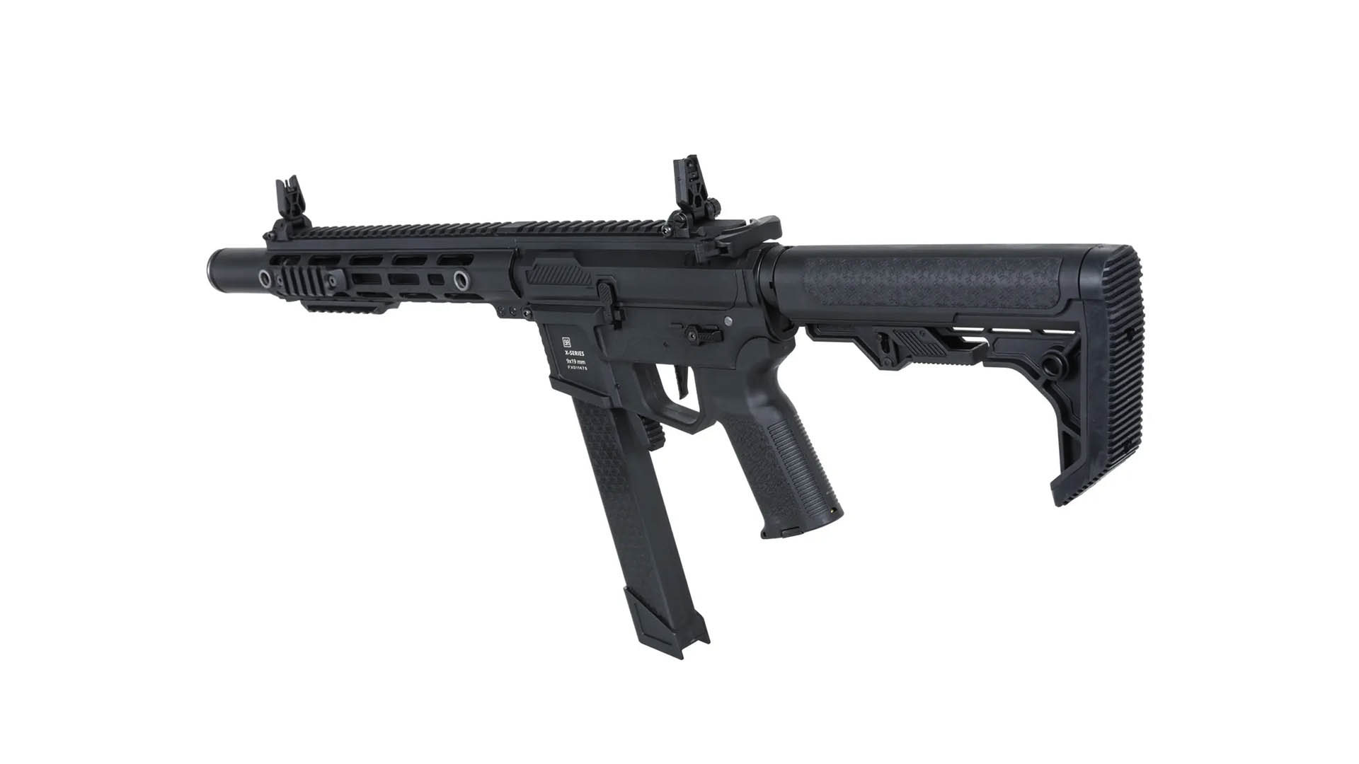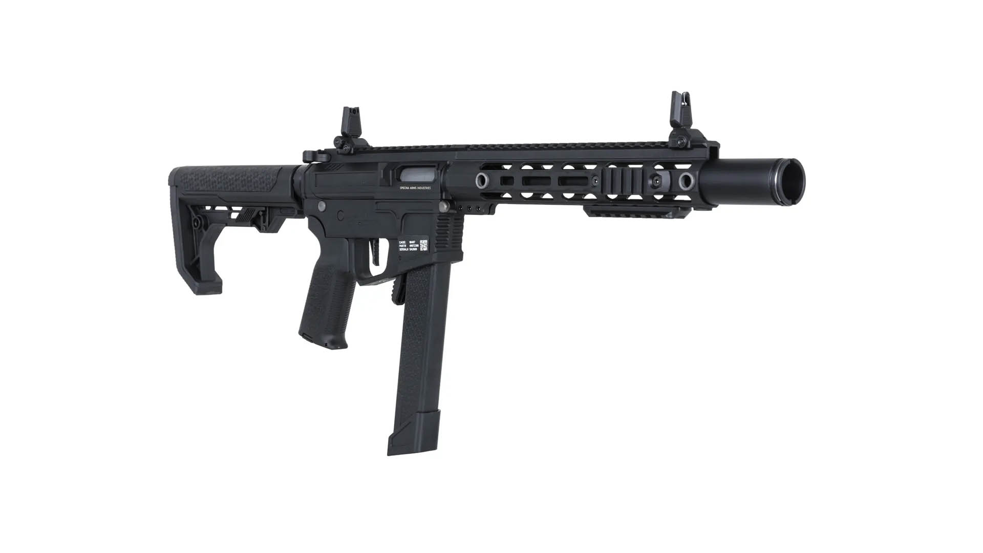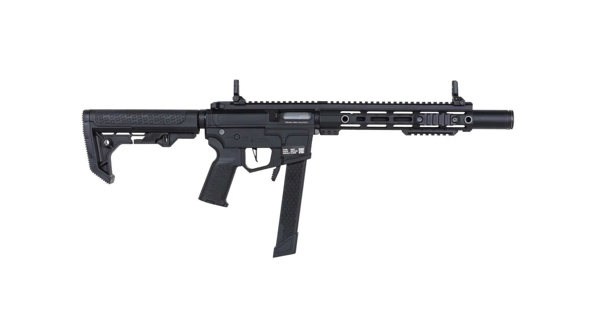 - Besondere Eigenschaften: beidseitige Bedienung, minimalistische Light Ops Schulterstütze mit gummierter Schaftkappe, patentierte Hop-Up- und Gearbox-Systeme