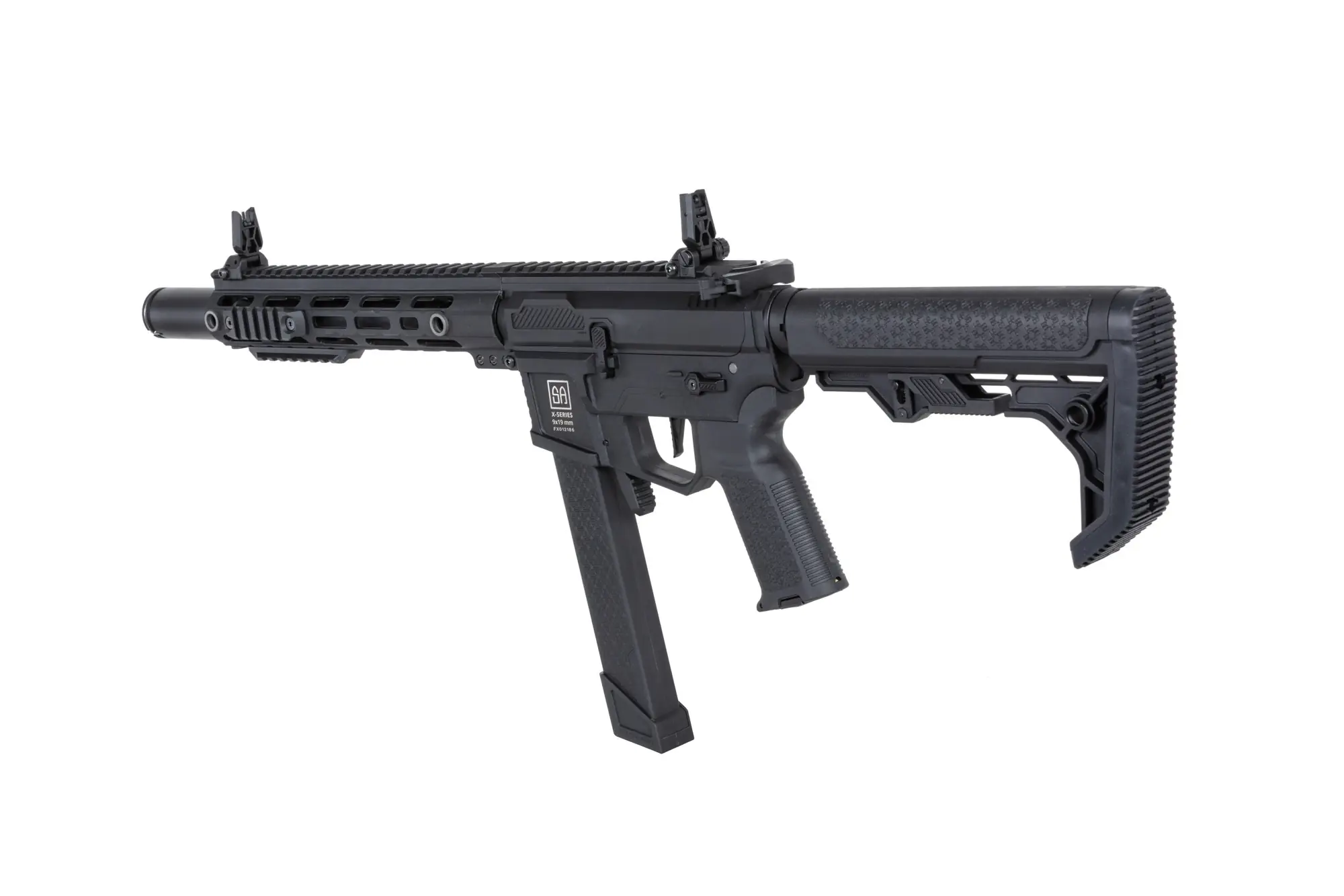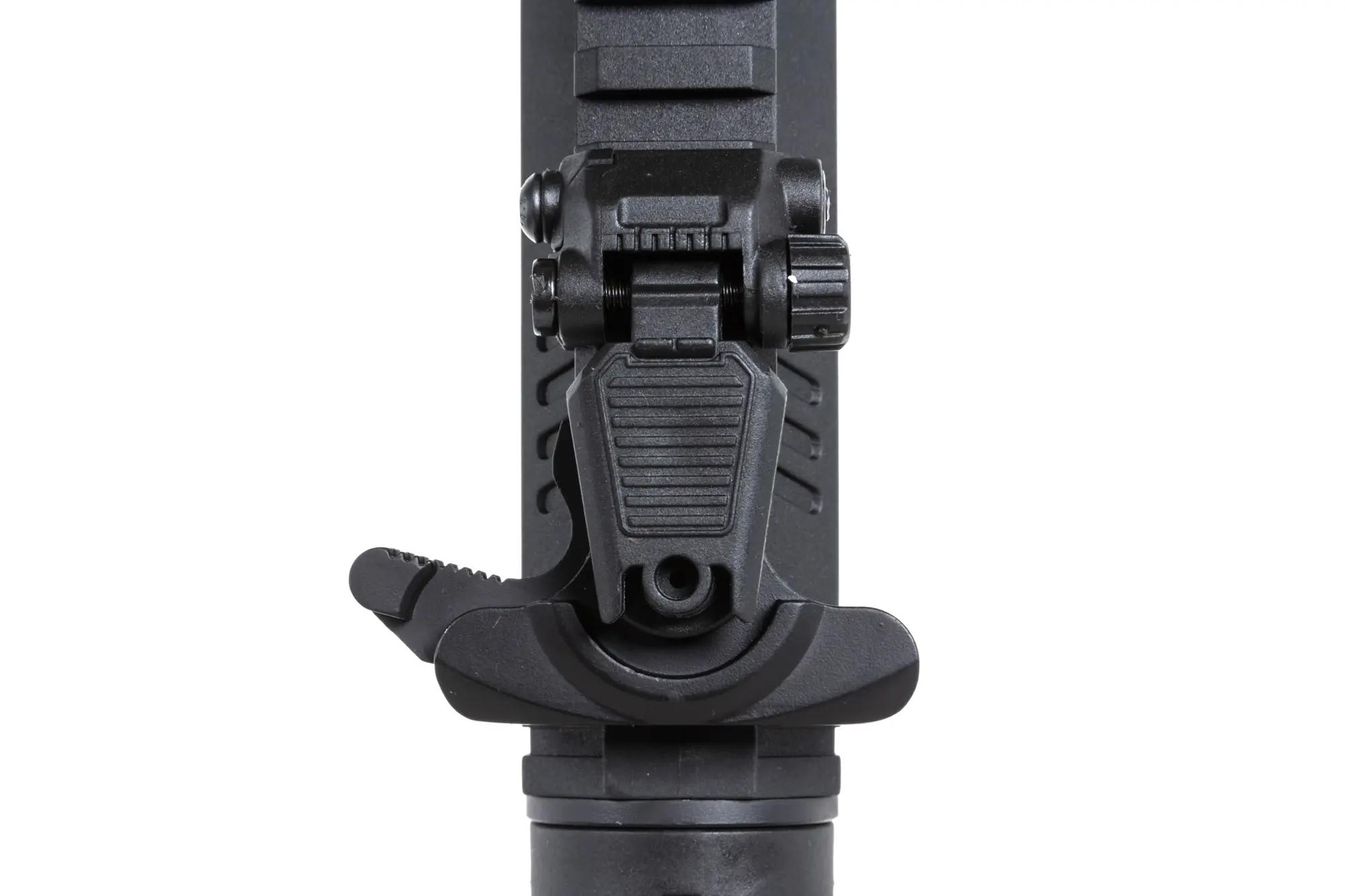 Gefertigt aus glasfaserverstärktem Polymer, Aluminium, Zink und Stahl bietet sie eine robuste und dennoch leichte Konstruktion – ideal für dynamische CQB-Einsätze. Die Waffe ist kompatibel mit Standard-M4-Komponenten und verfügt über das bewährte ESA™-Schnellwechselsystem, das eine schnelle Anpassung der Leistung an Spielfeldbedingungen ermöglicht.