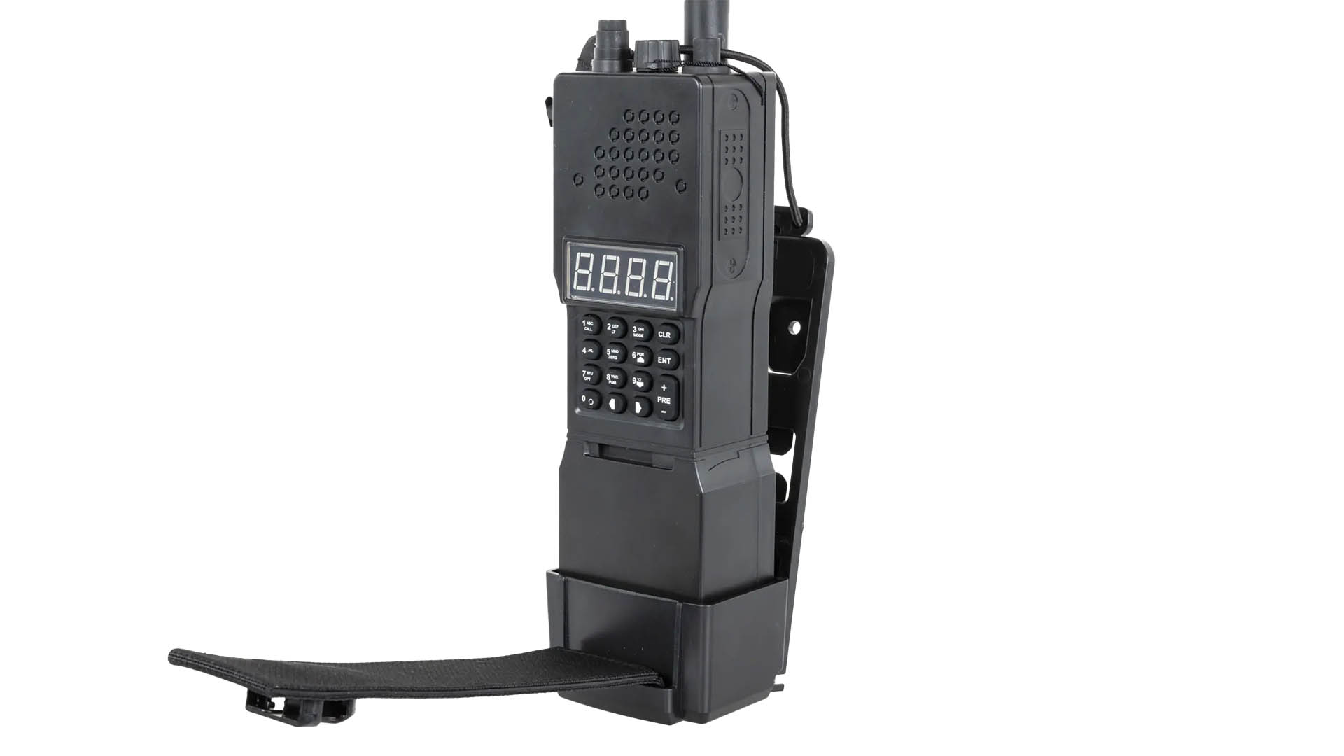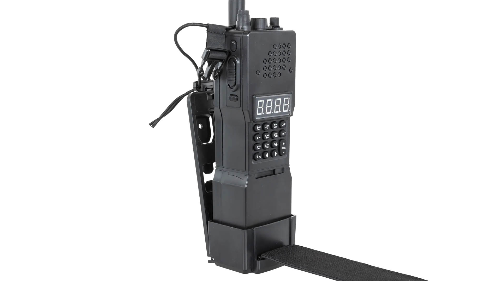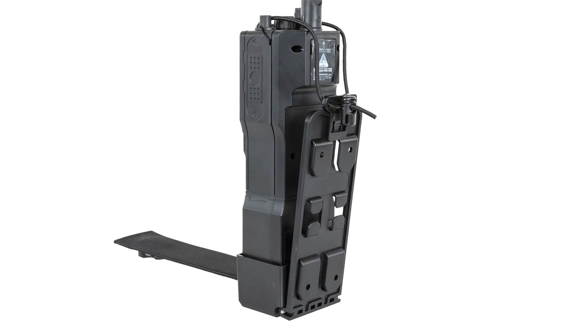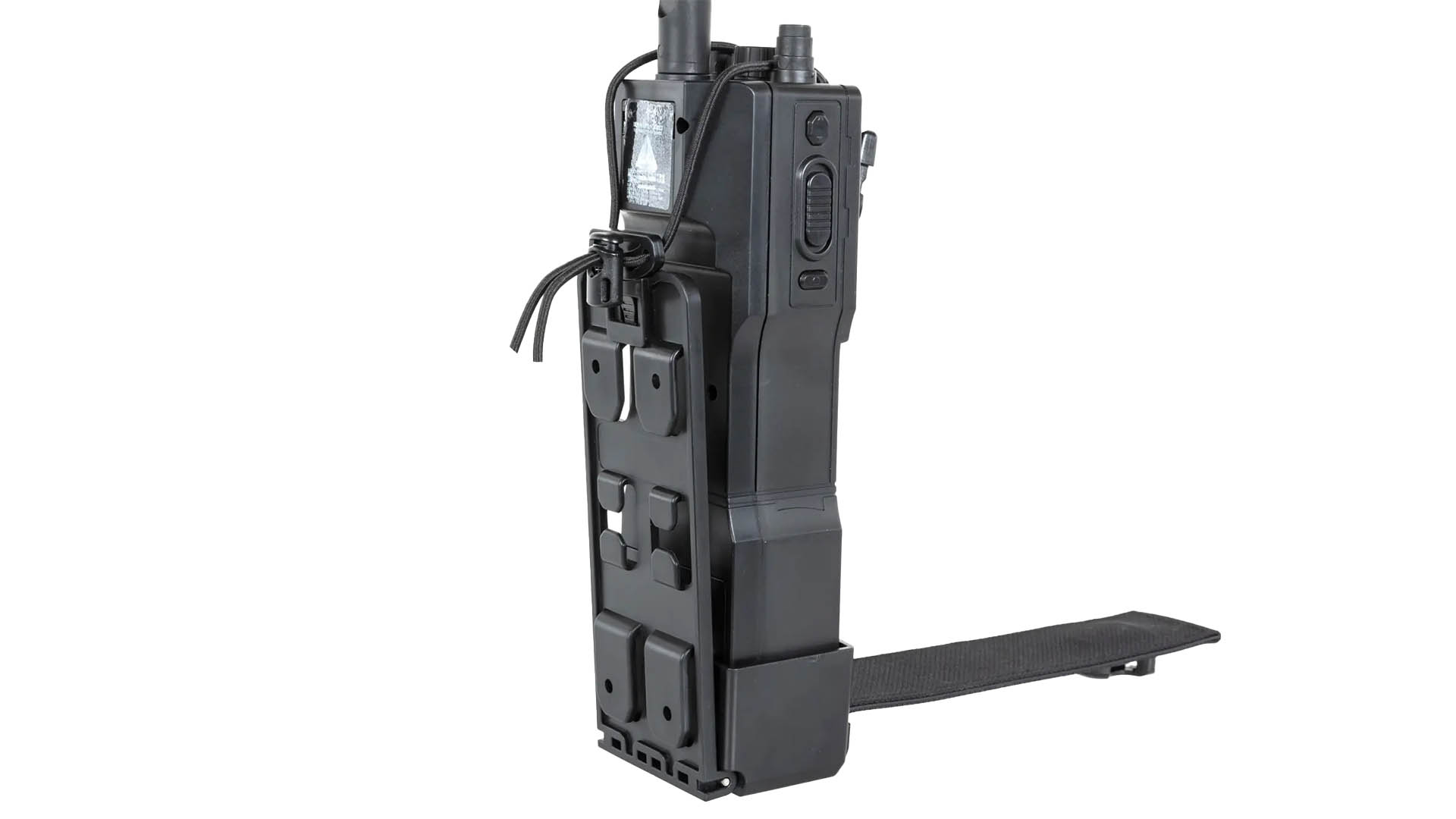 - Features: elektrischer Betrieb, programmierbare BB-Anzahl, Display, MOLLE-Halterung, Dummy-Radio-Design